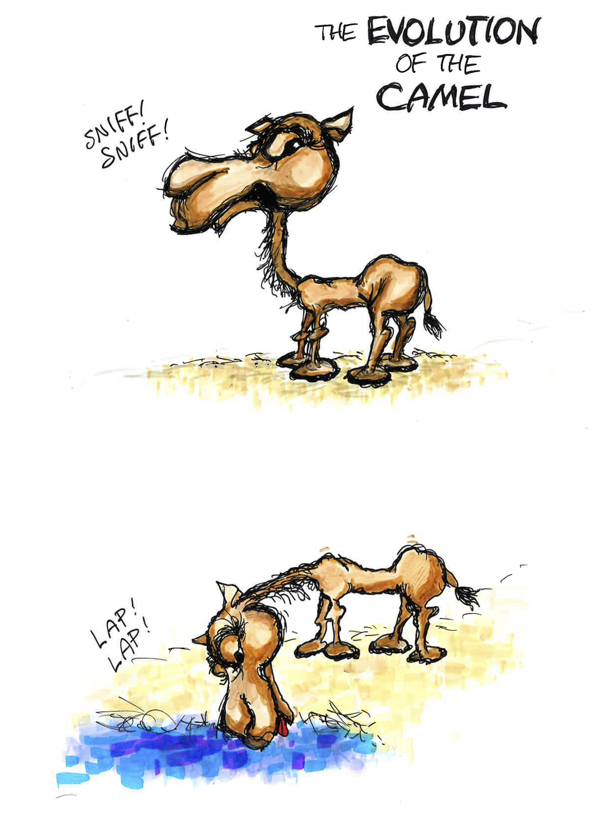 Here’s another in the “mishaps of evolution” series – the way the camel might have evolved without the stress of, for example, natural selection. Enjoy, use, and pass along – just cite “copyright 2016 by Russ Hodge” and link to this blog!